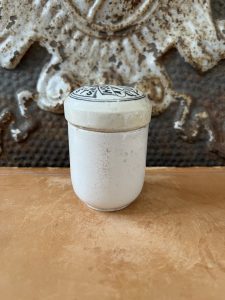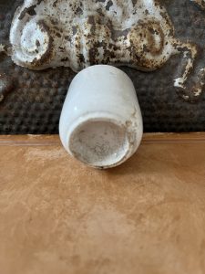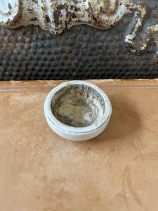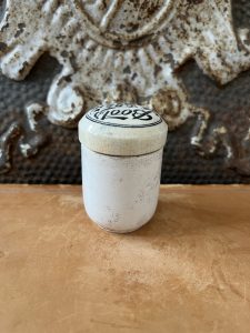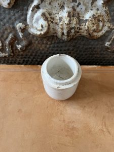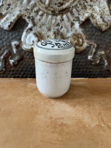 This is an authentic antique advertising pot sourced during my recent buying trip to England. I have been sourcing these wonderful antique pots for over 12 years from sources who are actually digging them up in ancient rubbish sites all over England. I purchased my first antique Advertising pot when my husband and I had the wonderful opportunity to live in England in the 1980’s. Our daughter was born there and we enjoyed living in England so much we often went back to visit after returning to the US.