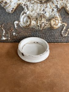This is an authentic antique advertising pot sourced during my recent buying trip to England. I have been sourcing these wonderful antique pots for over 12 years from friends who are actually digging them up in ancient rubbish sites all over England. I purchased my first antique Advertising pot when my husband and I had the wonderful opportunity to live in England in the 1980’s. Our daughter was born there and we enjoyed living in England so much we often went back to visit after returning to the US.