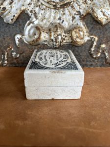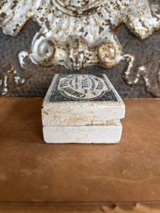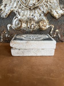 This is an authentic antique advertising pot sourced during my recent buying trip to England. I have been sourcing these wonderful antique pots for over 12 years from friends who are actually digging them up in ancient rubbish sites all over England. I purchased my first antique Advertising pot when my husband and I had the wonderful opportunity to live in England in the 1980’s. Our daughter was born there and we enjoyed living in England so much we often went back to visit after returning to the US.