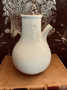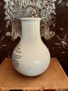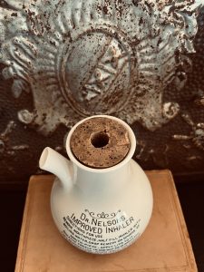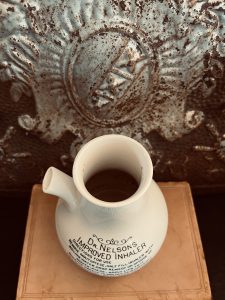 This antique Dr. Nelson’s Improved Inhaler, is a type of ceramic inhaler used in the 19th and early 20th centuries for steam inhalation therapy. These were commonly used for respiratory ailments like colds, asthma, and other breathing issues. This inhaler is an earlier version with the print style and the more detailed instructions.