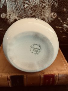 This is an authentic antique advertising pot sourced during my recent buying trip to England. I have been sourcing these wonderful antique pots for over 12 years from sources who are actually digging them up in ancient rubbish sites all over England. I purchased my first antique Advertising pot when my husband and I had the wonderful opportunity to live in England in the 1980’s. Our daughter was born there and we enjoyed living in England so much we often went back to visit after returning to the US.