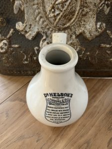 This antique Dr. Nelson’s Improved Inhaler, is a type of ceramic inhaler used in the 19th and early 20th centuries for steam inhalation therapy. These were commonly used for respiratory ailments like colds, asthma, and other breathing issues.