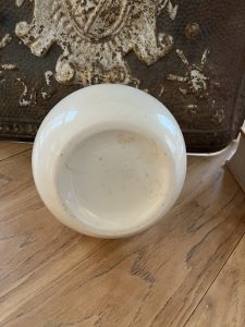 This is an authentic antique advertising pot sourced during my recent buying trip to England. I have been sourcing these wonderful antique pots for over 12 years from sources who are actually digging them up in ancient rubbish sites all over England. I purchased my first antique Advertising pot when my husband and I had the wonderful opportunity to live in England in the 1980’s. Our daughter was born there and we enjoyed living in England so much we often went back to visit after returning to the US.