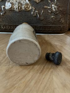 This is an authentic antique advertising pot sourced during my recent buying trip to England. I have been sourcing these wonderful antique pots for over 12 years from sources who are actually digging them up in ancient rubbish sites all over England. I purchased my first antique Advertising pot when my husband and I had the wonderful opportunity to live in England in the 1980’s. Our daughter was born there and we enjoyed living in England so much we often went back to visit after returning to the US.