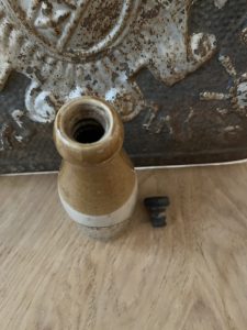 This is an authentic antique advertising pot sourced during my recent buying trip to England. I have been sourcing these wonderful antique pots for over 12 years from sources who are actually digging them up in ancient rubbish sites all over England. I purchased my first antique Advertising pot when my husband and I had the wonderful opportunity to live in England in the 1980’s. Our daughter was born there and we enjoyed living in England so much we often went back to visit after returning to the US.