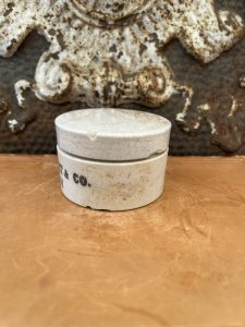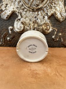 This smaller version chemist pot from Duncan, Flockhart & Co. Edinburgh has a printed base with plain lid. Founded in 1833, the firm began with chemists John Duncan and William Flockhart establishing their business in Edinburgh. In 1847, Flockhart supplied the very first chloroform for human use, marking a defining moment in the history of anesthesia. They held the title of Chemists and Druggists in Ordinary to Queen Victoria (supplying medicine to Balmoral) from 1862 to 1875, and became a key supplier of chloroform to military and medical institutions during major wars.