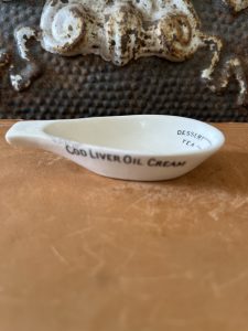 Offering this charming advertising measuring spoon dated back to the late 1800’s / early 1900’s. On one side of the spoon it reads: R. Thomson Chemist, Elgin. On the other side it reads: Cod Liver Oil Cream. In the inside it shows measuring levels for Dessert and Tea. This would be a unique piece for your kitchen decor or to display with the rest of your collection.