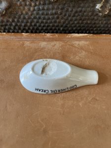 This is an authentic antique advertising piece sourced during my recent buying trip to England. I have been sourcing these type of wonderful antique pieces for over 12 years from sources who are actually digging them up in ancient rubbish sites all over England. I purchased my first antique Advertising pot when my husband and I had the wonderful opportunity to live in England in the 1980’s. Our daughter was born there and we enjoyed living in England so much we often went back to visit after returning to the US.