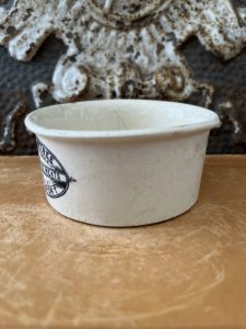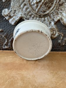 This is an authentic antique advertising pot. I have been sourcing these wonderful antique pots for over 12 years from sources who are actually digging them up in ancient rubbish sites all over England. I purchased my first antique Advertising pot when my husband and I had the wonderful opportunity to live in England in the 1980’s. Our daughter was born there and we enjoyed living in England so much we often went back to visit after returning to the US.