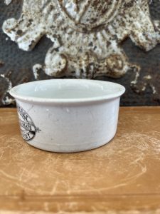 This is an authentic antique advertising pot. I have been sourcing these wonderful antique pots for over 12 years from sources who are actually digging them up in ancient rubbish sites all over England. I purchased my first antique Advertising pot when my husband and I had the wonderful opportunity to live in England in the 1980’s. Our daughter was born there and we enjoyed living in England so much we often went back to visit after returning to the US.