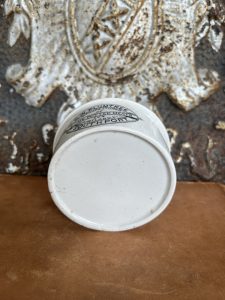 This is an authentic antique advertising pot. I have been sourcing these wonderful antique pots for over 12 years from sources who are actually digging them up in ancient rubbish sites all over England. I purchased my first antique Advertising pot when my husband and I had the wonderful opportunity to live in England in the 1980’s. Our daughter was born there and we enjoyed living in England so much we often went back to visit after returning to the US.