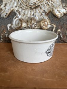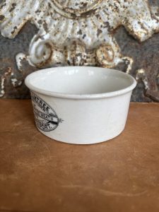 This is an authentic antique advertising pot. I have been sourcing these wonderful antique pots for over 12 years from sources who are actually digging them up in ancient rubbish sites all over England. I purchased my first antique Advertising pot when my husband and I had the wonderful opportunity to live in England in the 1980’s. Our daughter was born there and we enjoyed living in England so much we often went back to visit after returning to the US.