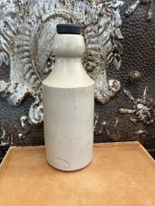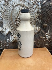Offering this two tone R. Emerson JUNr Ginger Beer – Newcastle on Tyne w/ screw in topper. The label boasts “The Doctors Touts.”. This bottle is in good condition with a hairline crack on the right side, and one minor chip on the front just below the word “This”