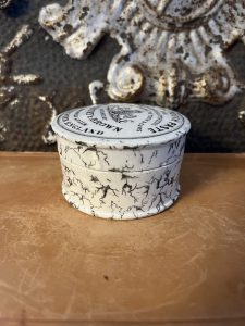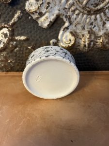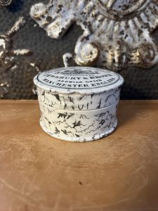 This is an authentic antique advertising pot sourced during my recent buying trip to England. I have been sourcing these wonderful antique pots for over 12 years from friends who are actually digging them up in ancient rubbish sites all over England. I purchased my first antique Advertising pot when my husband and I had the wonderful opportunity to live in England in the 1980’s. Our daughter was born there and we enjoyed living in England so much we often went back to visit after returning to the US.