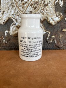 This is a listing for one (1) Antique English Advertising Pot – Poulton & Noel – Home-Made Potted Meats – Belgravian Brand. English Preparations Paté.