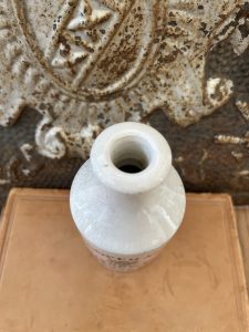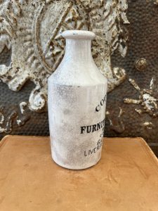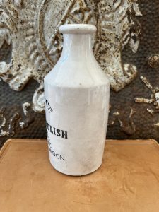 This is an authentic antique advertising pot sourced during my recent buying trip to England. I have been sourcing these wonderful antique pots for over 12 years from sources who are actually digging them up in ancient rubbish sites all over England. I purchased my first antique Advertising pot when my husband and I had the wonderful opportunity to live in England in the 1980’s. Our daughter was born there and we enjoyed living in England so much we often went back to visit after returning to the US.