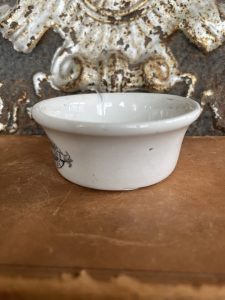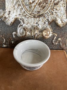 This is an authentic antique advertising pot. I have been sourcing these wonderful antique pots for over 12 years from sources who are actually digging them up in ancient rubbish sites all over England. I purchased my first antique Advertising pot when my husband and I had the wonderful opportunity to live in England in the 1980’s. Our daughter was born there and we enjoyed living in England so much we often went back to visit after returning to the US.