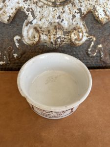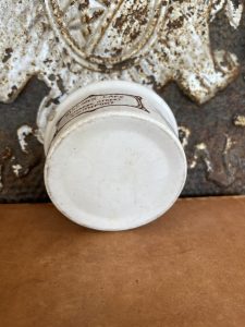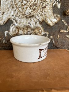 This is an authentic antique advertising pot. I have been sourcing these wonderful antique pots for over 12 years from sources who are actually digging them up in ancient rubbish sites all over England. I purchased my first antique Advertising pot when my husband and I had the wonderful opportunity to live in England in the 1980’s. Our daughter was born there and we enjoyed living in England so much we often went back to visit after returning to the US.