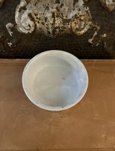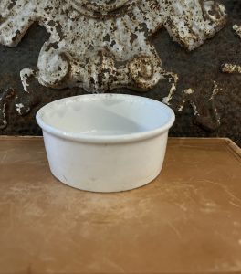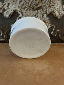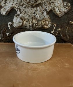 This is an authentic antique advertising pot sourced during my recent buying trip to England. I have been sourcing these wonderful antique pots for over 10 years from sources who are actually digging them up in ancient rubbish sites all over England. I purchased my first antique Advertising pot when my husband and I had the wonderful opportunity to live in England in the 1980’s. Our daughter was born there and we enjoyed living in England so much we often went back to visit after returning to the US.