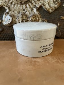 This listing is for this rare Victorian era J.W. HINCKS printed pot w/lid for ointments and creams. The pot reads: