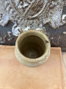 This is an authentic antique advertising pot sourced during my recent buying trip to England. I have been sourcing these wonderful antique pots for over 12 years from friends who are actually digging them up in ancient rubbish sites all over England. I purchased my first antique Advertising pot when my husband and I had the wonderful opportunity to live in England in the 1980’s. Our daughter was born there and we enjoyed living in England so much we often went back to visit after returning to the US.