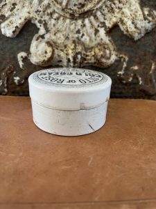 Otto of Rose refers to a skincare product infused with rose oil (otto of rose), which was a popular luxury ingredient in the 19th century. S. F. Goss Ltd. was a London-based chemist and perfumery retailer.
