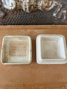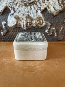 Offering this wonderful and RARE large square lidded SAUNDERS Camphor Tooth Paste with a well fitted base. It reads: “Camphor Tooth Paste, for Cleansing Beautifying Preserving the TEETH & GUMS.”