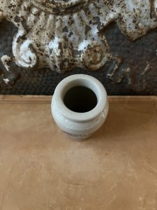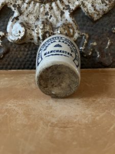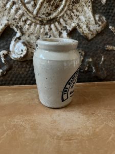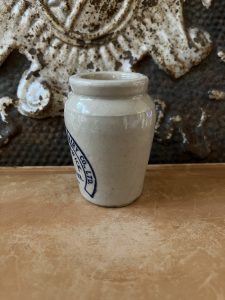 These are all authentic antique advertising pots sourced during my recent buying trip to England. I have been sourcing these wonderful antique pots for over 12 years from friends who are actually digging them up in ancient rubbish sites all over England. I purchased my first antique Advertising pot when my husband and I had the wonderful opportunity to live in England in the 1980’s. Our daughter was born there and we enjoyed living in England so much we often went back to visit after returning to the US.