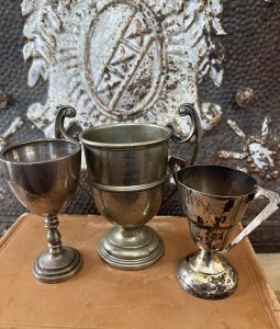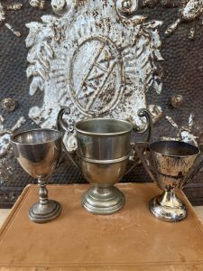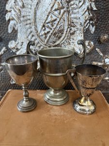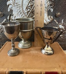 Offered is this great cluster of silver plated vintage trophies, sold as a set. The tall one is from 1931 and the others are estimated to be from the 50’s. Estimated to be from the