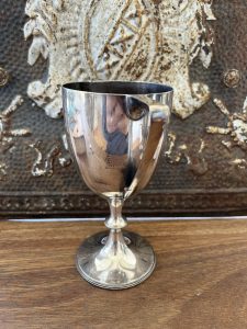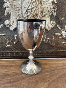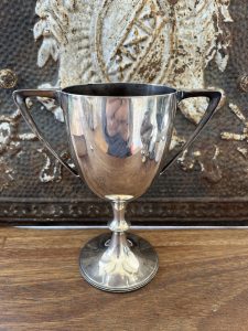 Offered is this very attractive Vintage silver plated English trophy. I picked this up at one of the many markets I visited on our last buying trip to England, and it has that great vinatage feel to compliment your collection. It’s a solid, heavy trophy.