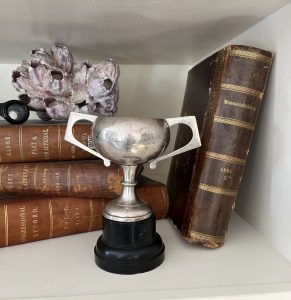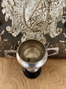 Offered is this very attractive Vintage silver plated English trophy. I picked this up at one of the many markets I visited on our last buying trip to England, and it has that great vinatage feel to compliment your collection.