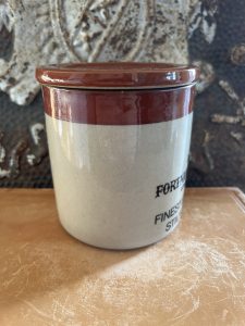 I purchased my first antique Advertising pot when my husband and I had the wonderful opportunity to live in England in the 1980’s. Our daughter was born there and we enjoyed living in England so much we often went back to visit after returning to the US.