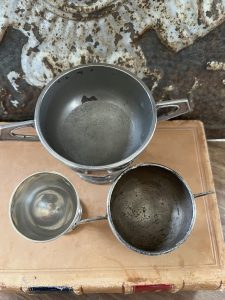 Very good condition measures 3 1/4” tall to top of handle x 5 1/4” handle to handle x 3” mouth