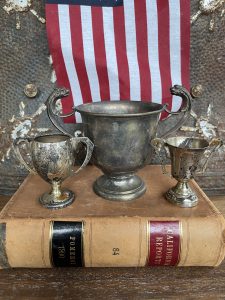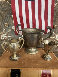 Offered is this great cluster of small silver plated vintage trophies, sold as a set. There is no writing but believed to be from the 50’s or 60’s.
