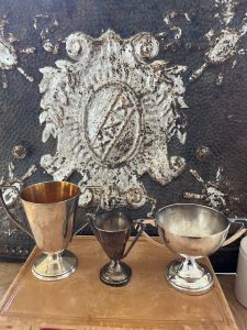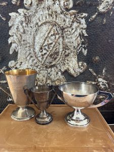 Offered is this great cluster of smaller loving cup silver plated vintage trophies, sold as a set.