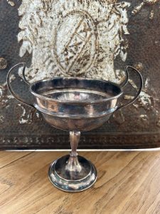 • The style of the trophy (plain silver cup, pedestal stem, minimal ornament, hand-engraved block lettering) is very typical of 1930s–1940s military sports trophies.