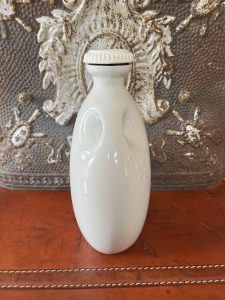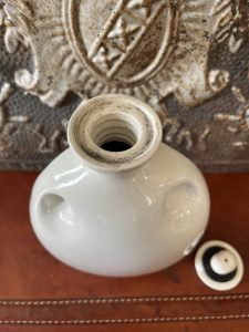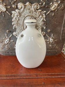 Vintage “The Mecca” Hot Water Bottle from Grimwades LTD, England. This is an early 20th-century stoneware hot water bottle, produced by Grimwades Ltd, a well-known English pottery manufacturer. These were common household items before electric heating and rubber hot water bottles became widespread.