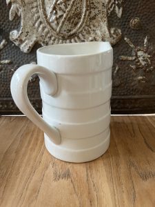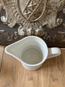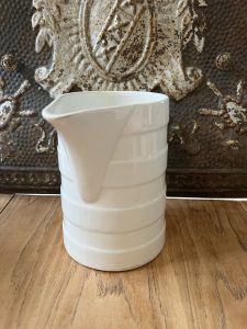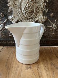 Offering this lovely banded ironstone pitcher / jug with a 24 oz. capacity. This could be used functionally as a pitcher to serve, or to hold a floral